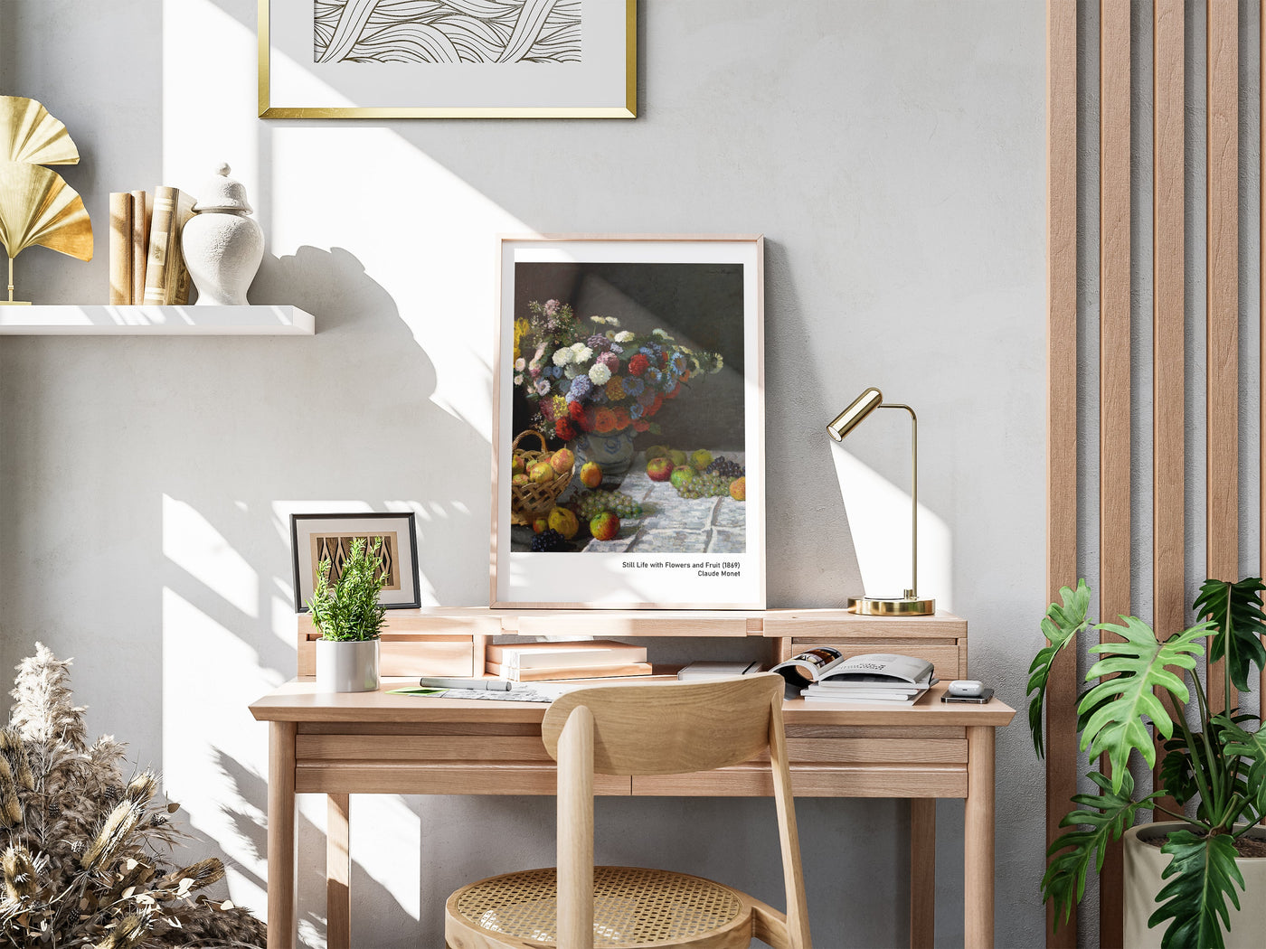 Dodaj żywy i ponadczasowy akcent artystyczny do każdego pomieszczenia dzięki plakatowi Martwa natura z kwiatami i owocami (1869). Jasne kolory i klasyczny styl rozjaśnią Twojego ducha i natychmiast poprawią Twój wystrój! Jak będzie wyglądać Twoja przestrzeń dzięki temu wyjątkowemu elementowi?